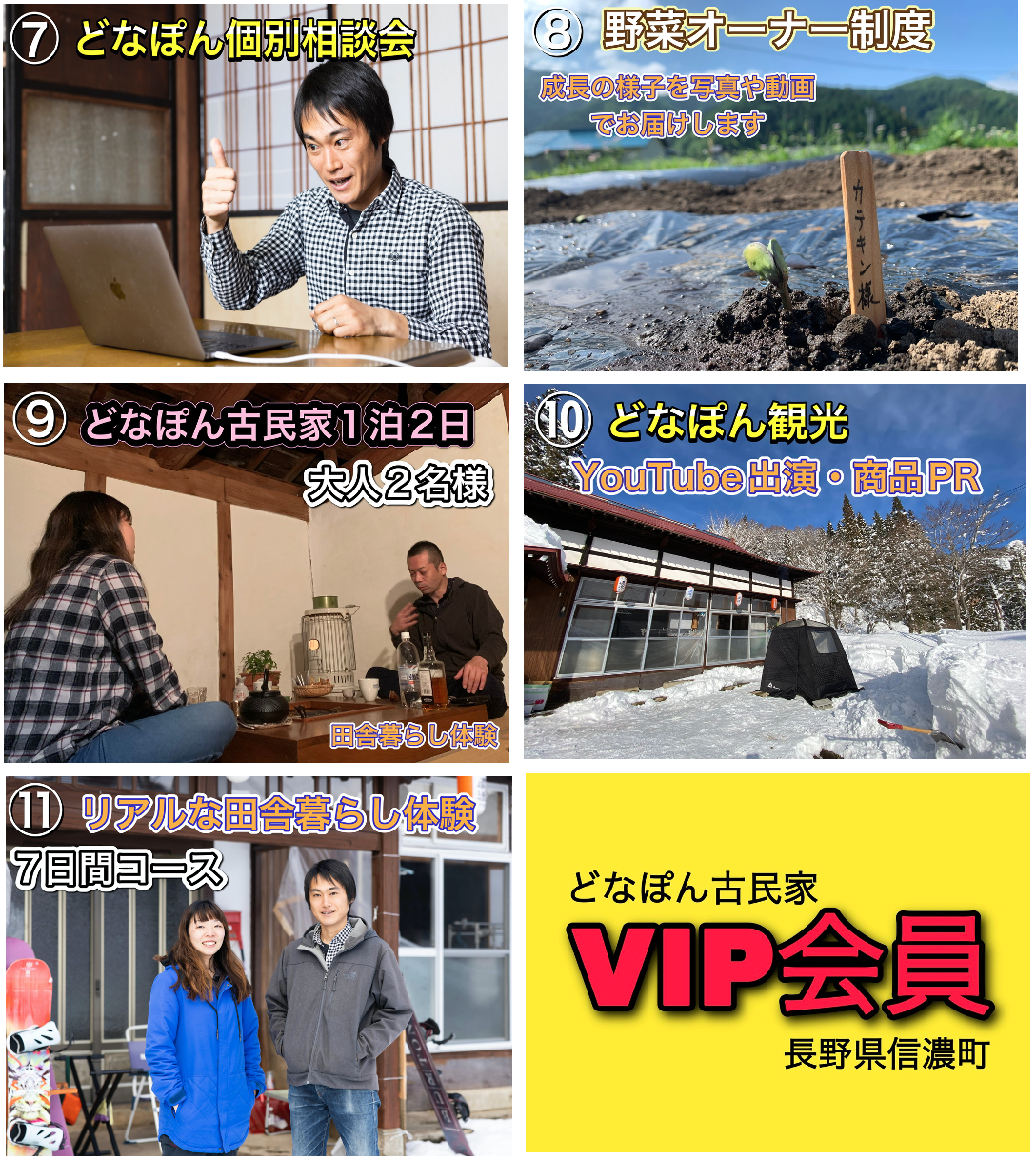 12.どなぽん古民家VIP会員:毎月届く2022年6月〜2023年5月まで「どなぽん&信濃町特産品」+宿泊体験等:98,000円、その他できる限りのご要望にお応え致します。