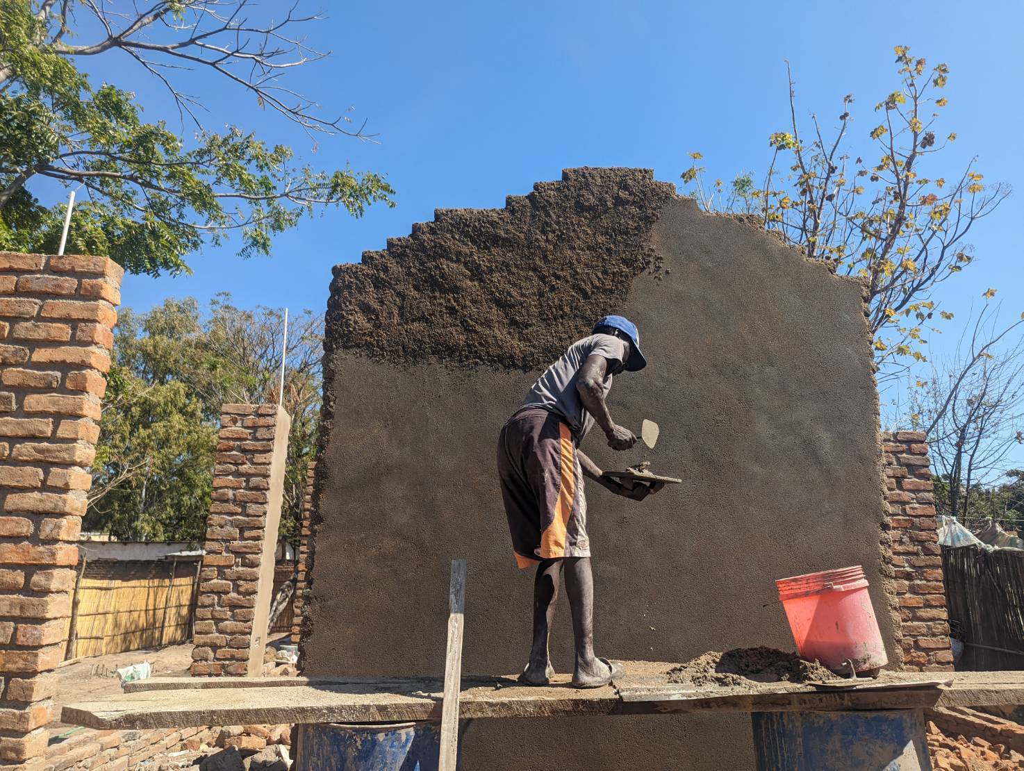 私の居た期間には、一つの建物のレンガで組んだ基礎にセメントを打ち付けて壁を作ってたり、トイレの建設で便器や扉を設置したりしていました。