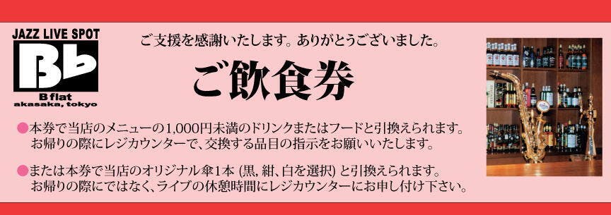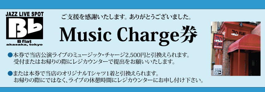 ●支援金10.000円ごとに、Music Charge券1枚