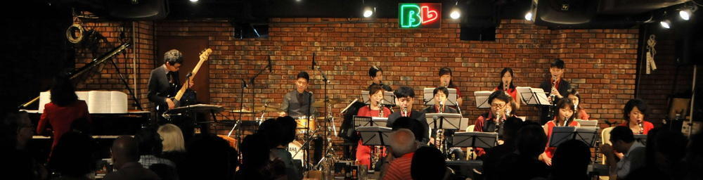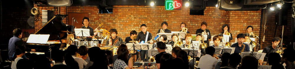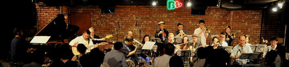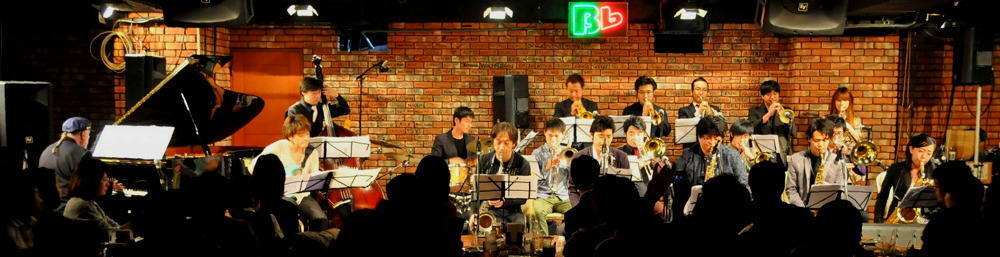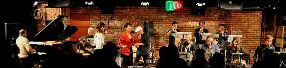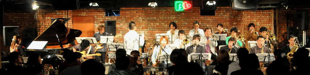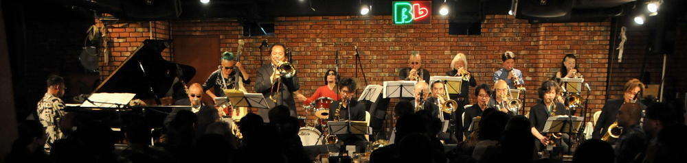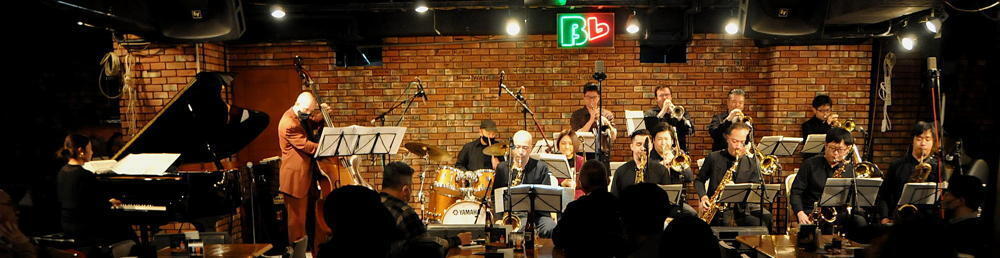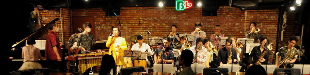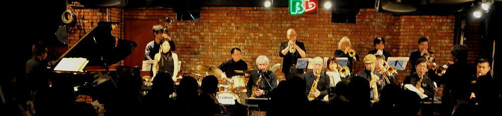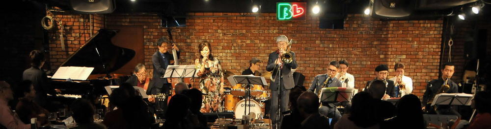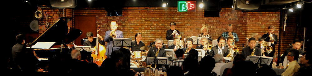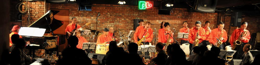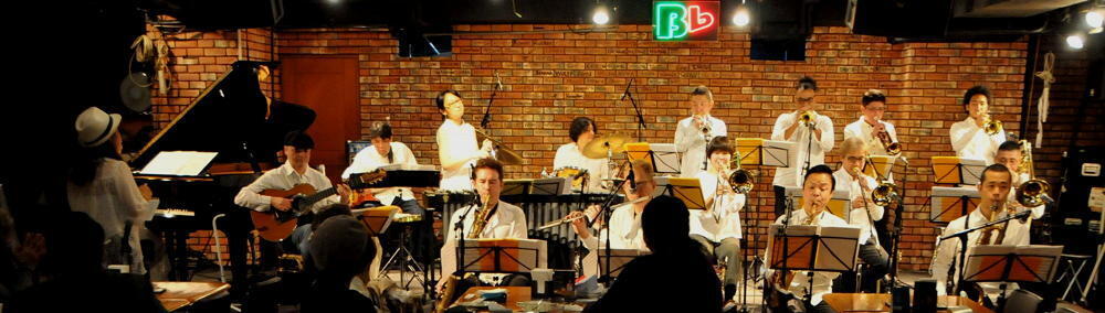 ビーフラットのステージで、美しいハーモニーと熱いソロを演じる数々のビッグ・バンド