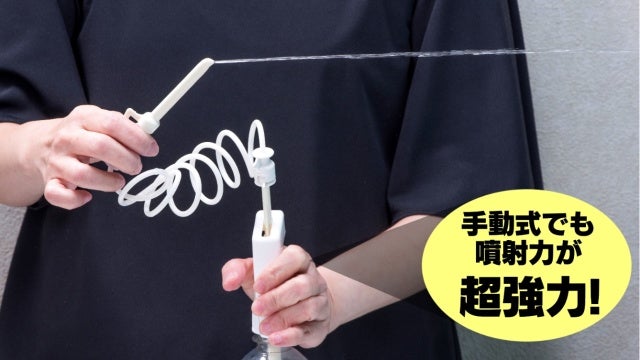 ③ハンドポンプの握り具合でジェット噴射の圧力が調整できます。