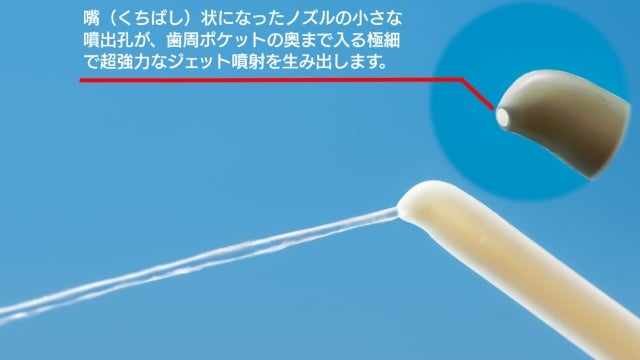 どんなに強力なジェット噴射を生んでも、狭い歯間や歯周ポケットに水が当たらなければ奥に詰まった歯垢は取り除けません。