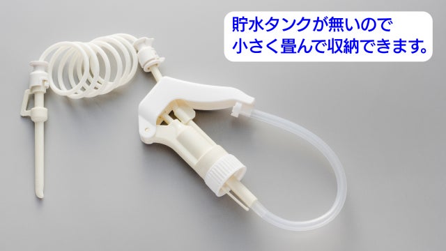 電源不要。ハンドポンプの力で超強力なジェット噴射を作り、歯間や歯周ポケットの奥までお手入れ。 -