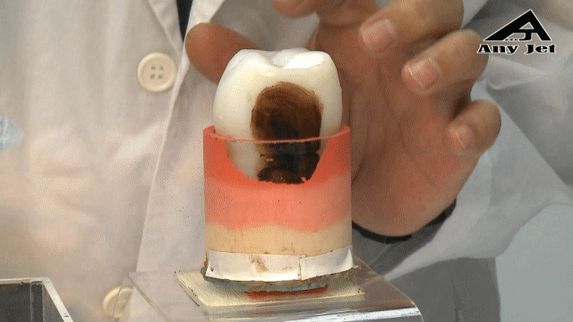 歯ブラシや糸ようじ(デンタルフロス)では取れないポケットの奥に詰まった歯垢も、ご覧の通りお手入れが可能です。ジェット噴射は強力なので、楊枝では取り難い奥歯に挟まった繊維状の食べカスも楽々お掃除※。