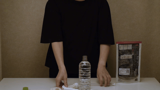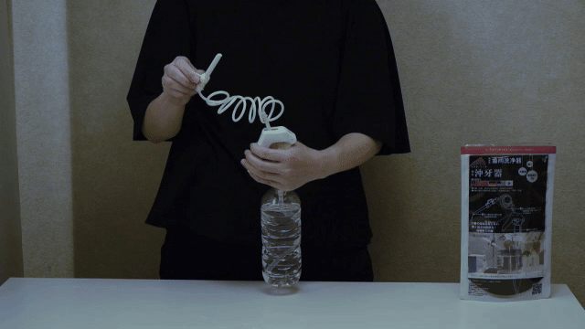 ペットボトルにも装着可能。キャンプなど水道が無い場所でも歯や歯茎のお手入れができる。 -