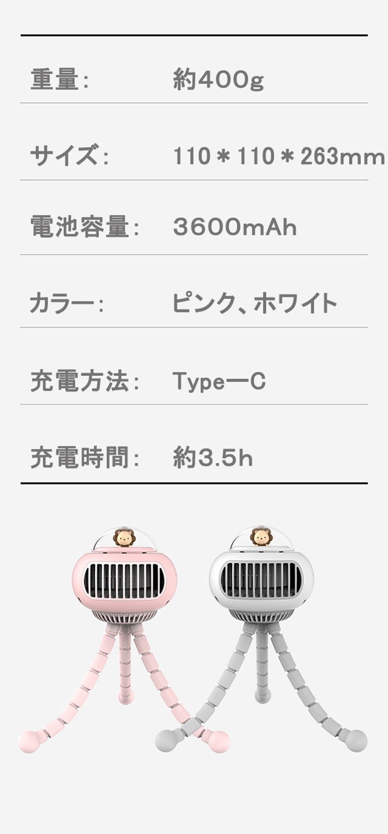 外出先やお出かけで使いやすい充電式。フル充電すれば最大12時間の連続使用が可能で、コストパフォーマンスと高性能を両立した便利アイテムです。