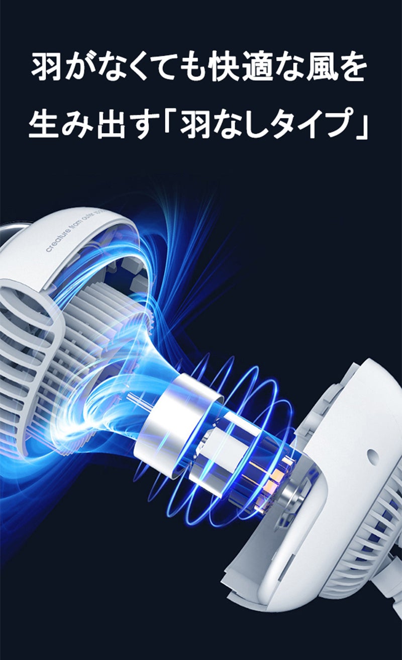 内部にモーターが内蔵されている羽なしタイプ。羽根がないため怪我をする恐れがなく、運転音が静かで安全性が高いです。