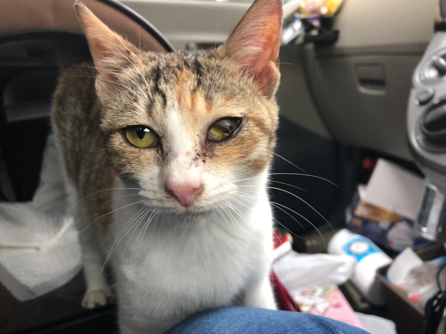 2匹目の猫(クリア)を受け入れました。里親募集のホームページを見て連絡し、飛行機で本土まで迎えに行きました。
