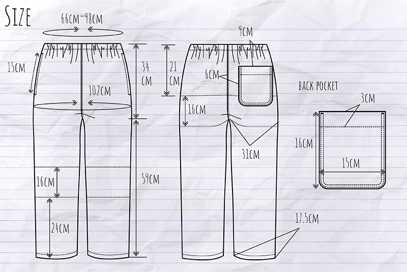 少しスッキリしたシルエットですが、ウエストはゴム仕様でストレッチ生地ですので、