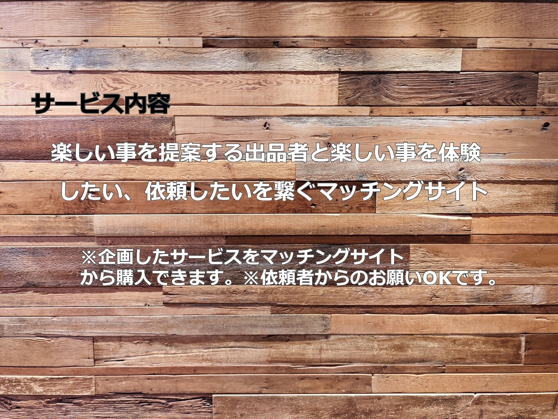 楽しい事を教えてくれる場所に仕事や遊びが集まれば出品者、購入者どちらもWIN、WINな関係で取引できると思い、今回の楽しい事を出品できるマッチングサイトの運営を始めようと思いました。