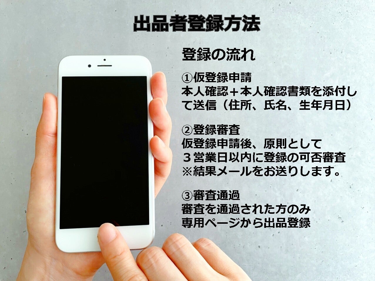 出品者登録方法※サービス安全性のため、本人確認書類必須