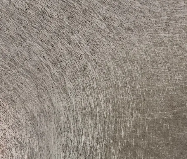 サテン仕上げは素材の表面にランダムな磨き傷をつける事により光が乱反射してグレーに見え