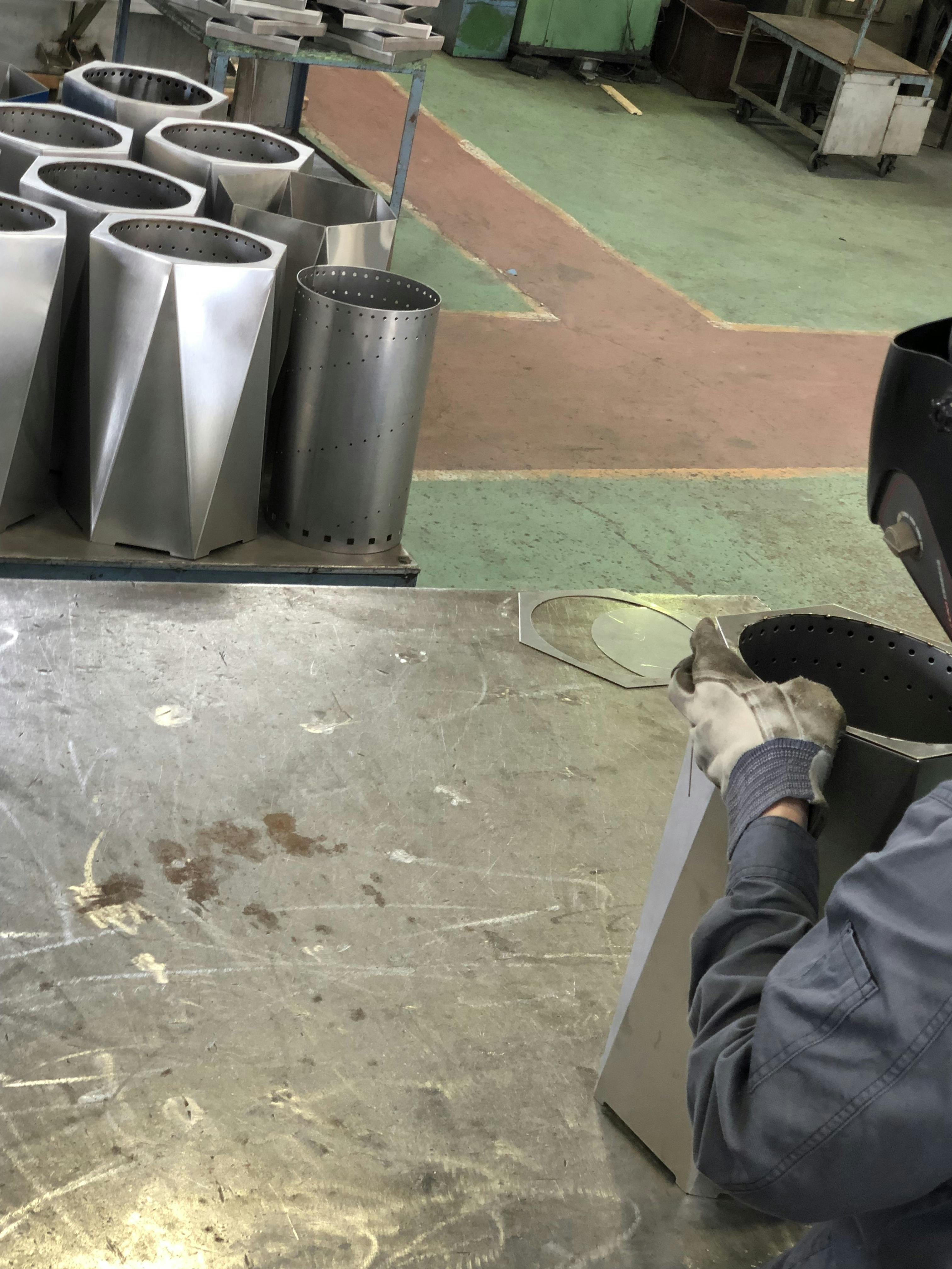 ネジ留めやリベット留めを一切行わずに一つ一つ丁寧に溶接をしておりますので、溶接のバラつきや扱いキズ仕上げのムラが発生する際はご容赦下さいませ。