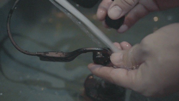 したがって耳の中にイヤホンを差し込む必要がなく、こめかみ近くにフィットさせます。これにより、汚れやすい、落ちやすい、鼓膜への悪影響、周囲の音が聞こえない、音漏れなどのカナル型、ポッド型の悩みが解決できるのが次世代「骨伝導」イヤホン技術なのです。