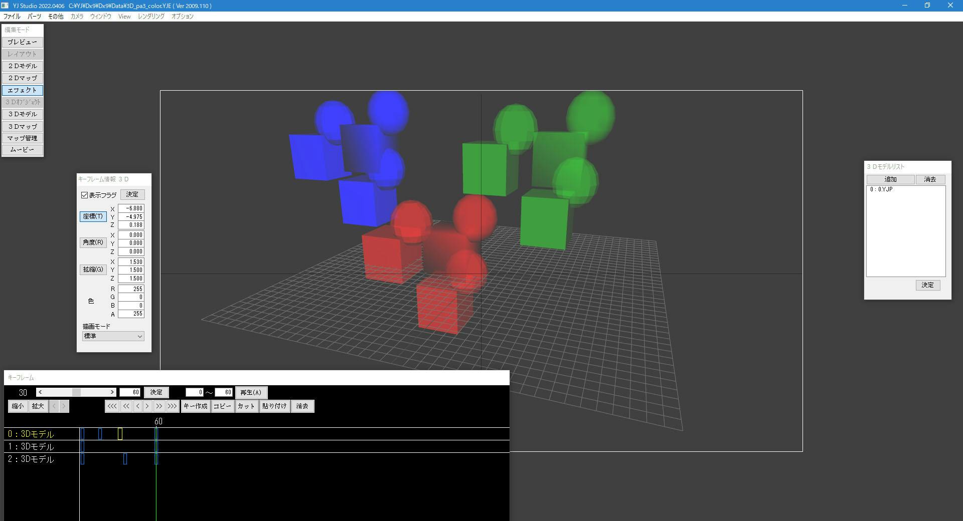 ・3Dモデルを複数使用した場合、キーごとのカラーアニメーションが