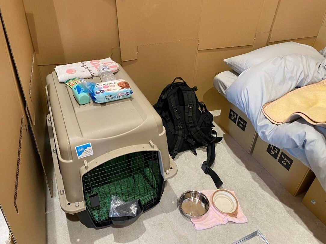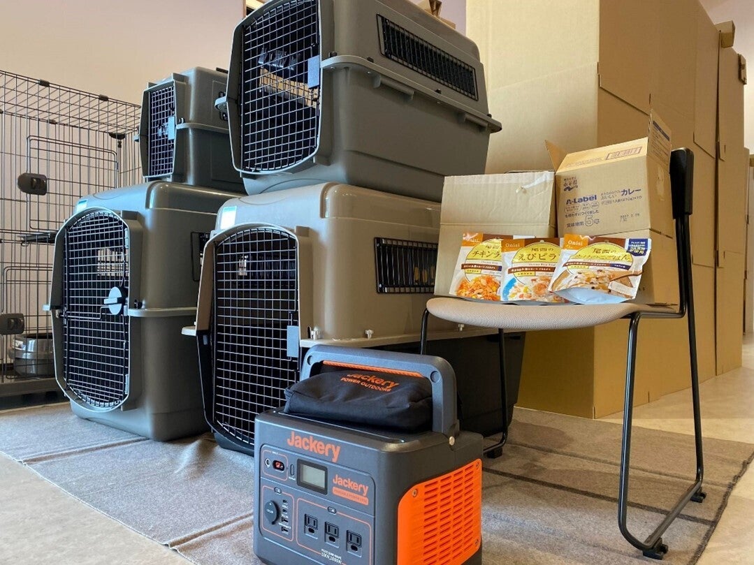 <避難所の備え サイズの様々なケージ・ポータブル電源・非常食>
