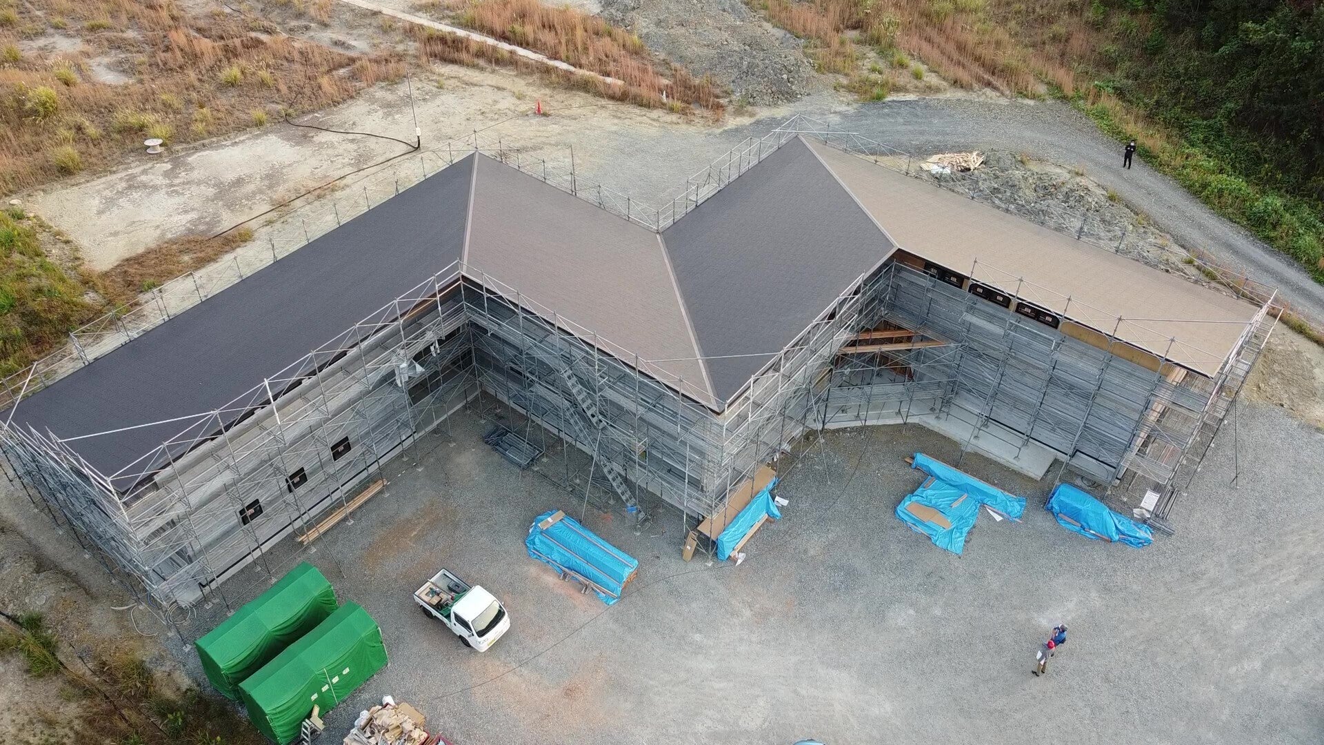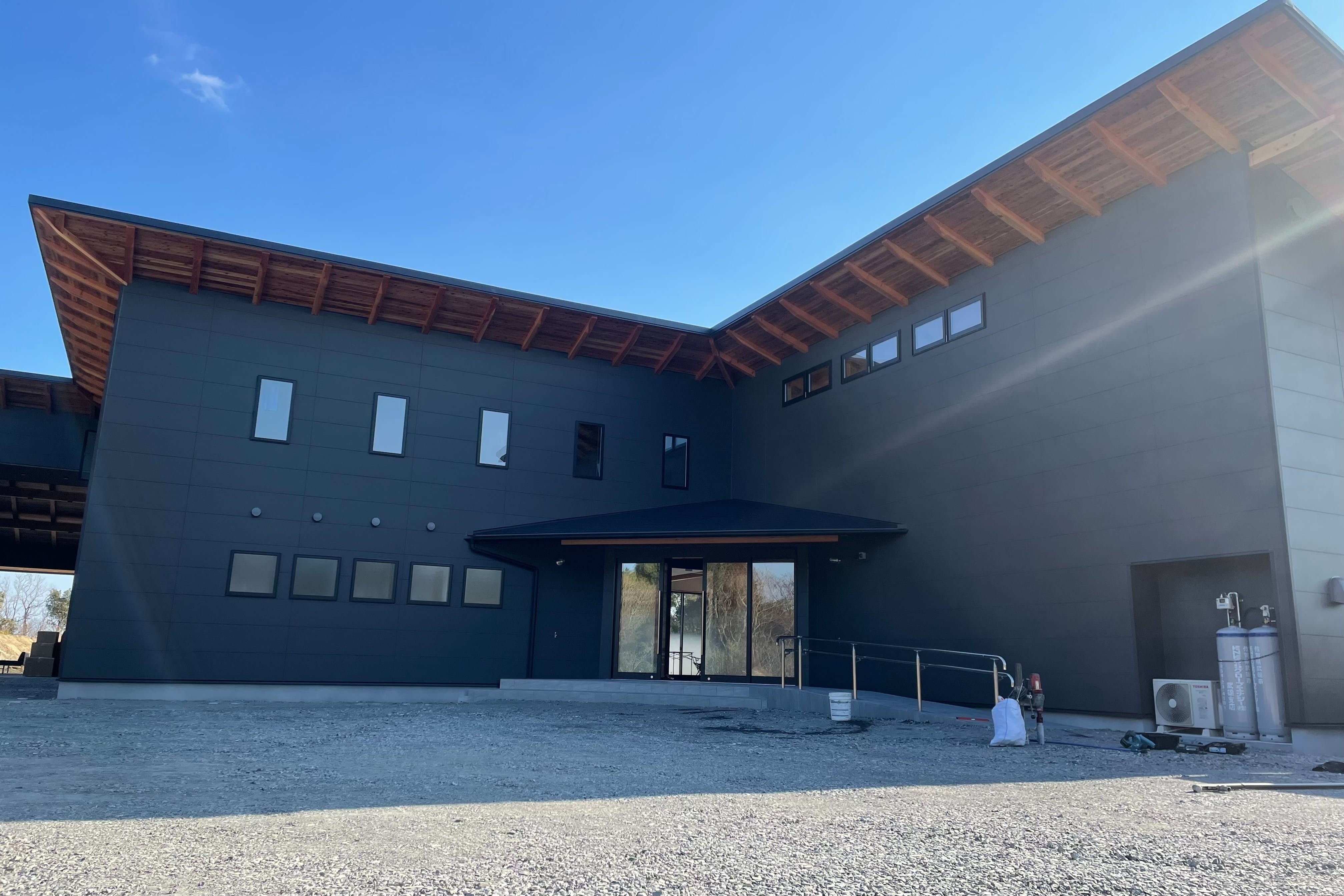 令和3年8月、工事着工が始まり令和4年の2月1日、拠点の建物部分が完成致しました。