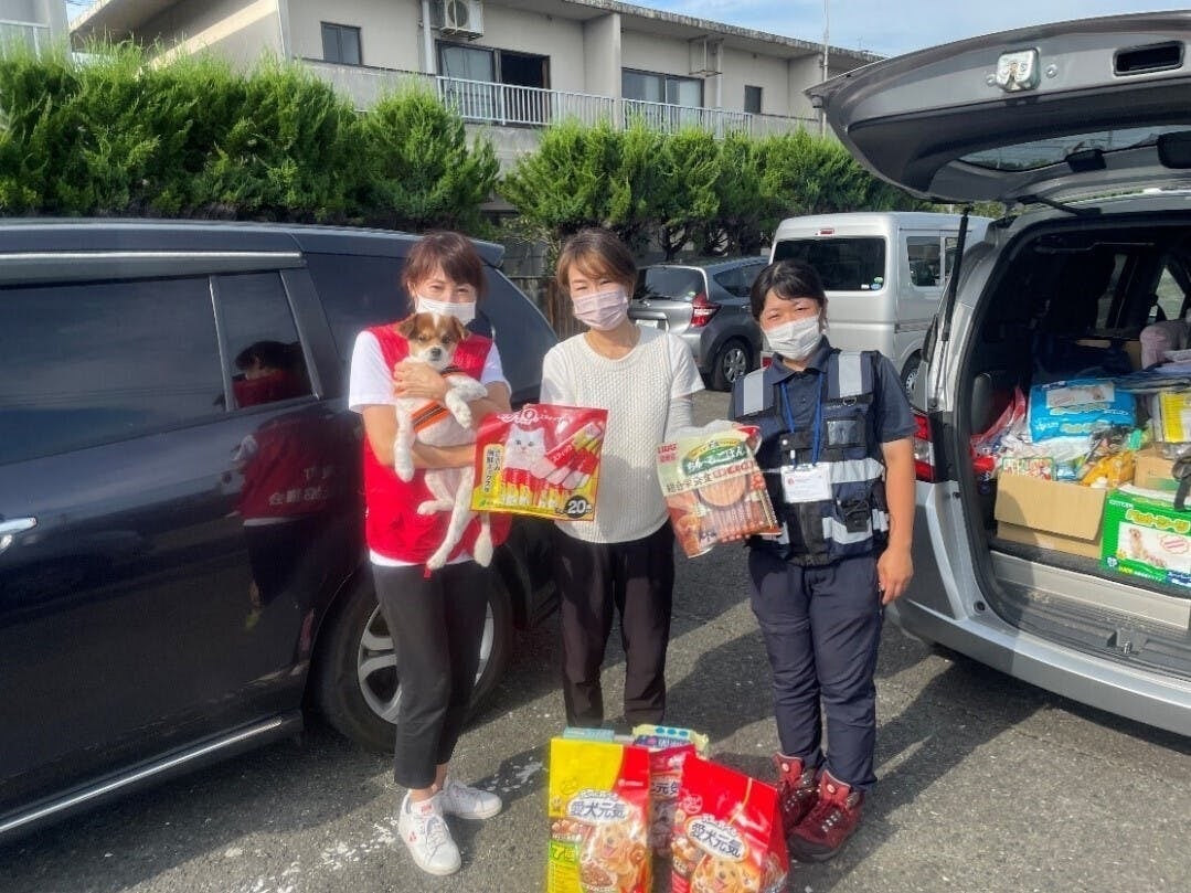 当協会は、令和3年8月豪雨災害の際、被災されたペットを飼っている世帯にペット用品の提供や、マイクロバスを一時避難場場所として開設運営、医療費支援等を行いました。