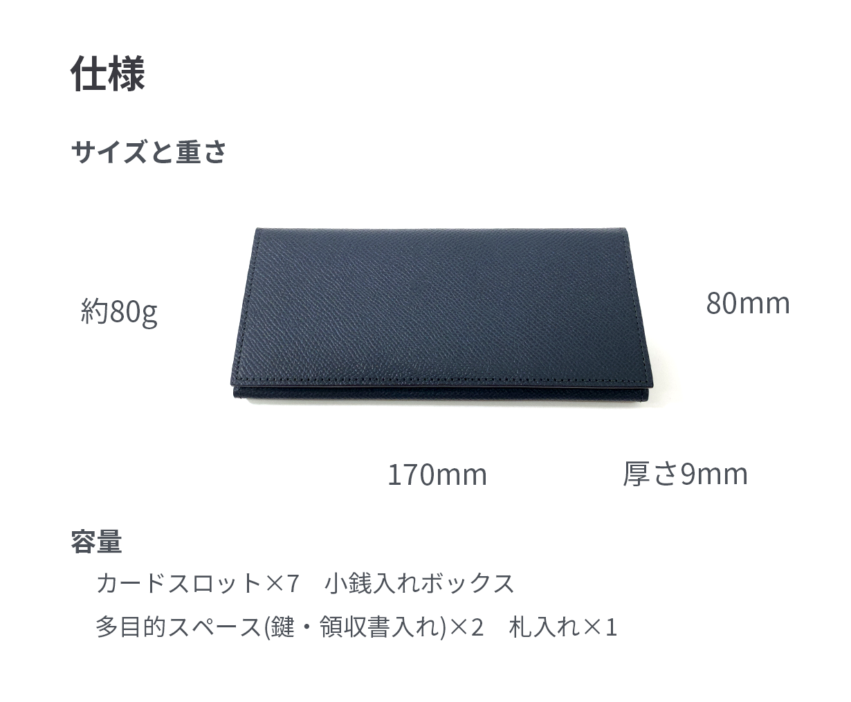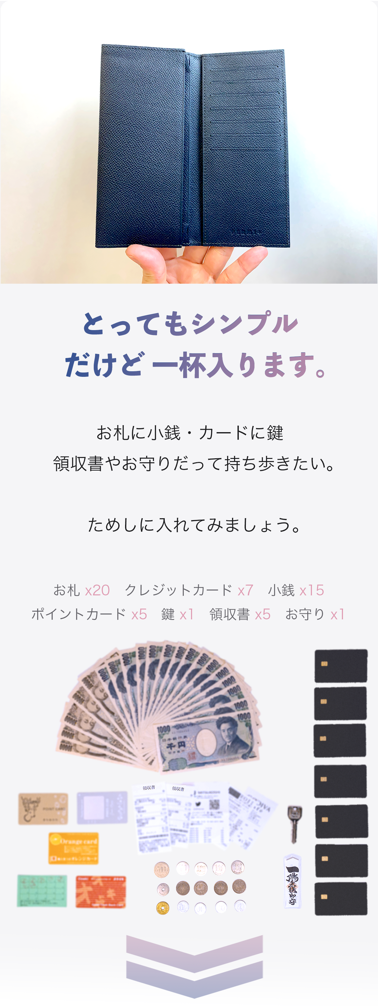 Minimalism Wallet Longには、同価格帯のお財布ではまず見かけないレベルの素材・構造・品質が揃っていて、絶対に後悔させない自信があります。