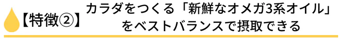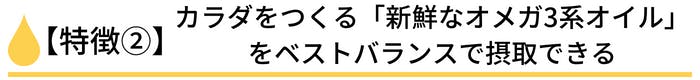 原料となる大豆を光と酵素を遮断した中で、圧搾方式で搾って作られており、ヘキサンのような化学物質や添加物は一切加えず製造した、人間の細胞膜と同じバランスの脂肪酸であり、カラダをつくる「新鮮なオメガ3系オイル」をベストバランスで摂取することができます。しかもオイルの良い状態が続く、魔法のようなオイルなのです。