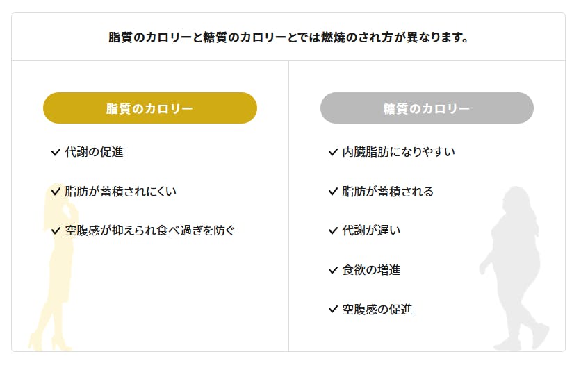 糖質やたんぱく質は1gあたり約4kcalにあるのに対して、脂質は9Kcalです。こうして比べると同じグラム数の糖質やたんぱく質をとるより、脂質のほうが太りやすいと考えてしまうかもしれません。