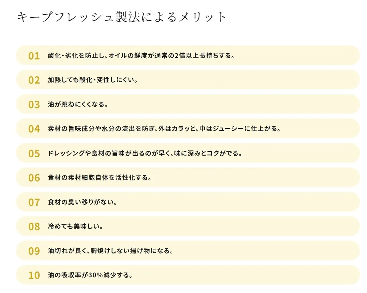 Keep Fresh製法は加熱しても酸化しずらいから安心!