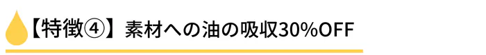 油の素材への吸収は、一般の油と比べ30%低減し、油の吸収が少なく油が酸化しないことにより、レゾナンスオイルで調理をした食材は大変油切れがよく、さっぱりした仕上がりで、胸焼けしません。