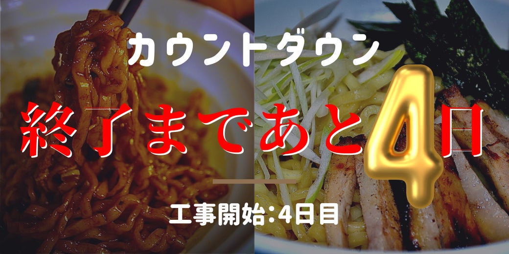 【活動報告 DAY42】 (5/5)チャレンジ四十二日目、4名のご支援者様が現れました!【達成率】43% 【ご支援総額】1,233,251円【1,200,000円到達しました!】【人気】①位 名入れ丼(追加してます!)②位 おうち麺爺③位 木札『大』&キーホルダー【麺爺の歩み㊶】本クラウドファンディンギグは残すところ『3日』です。5/6(金) 5/7(土) 5/8(日)現在43%のご支援を頂いております。【店内の内装工事の様子】集中できるかなぁ。。。