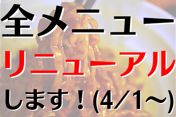 全メニューリニューアルします。
