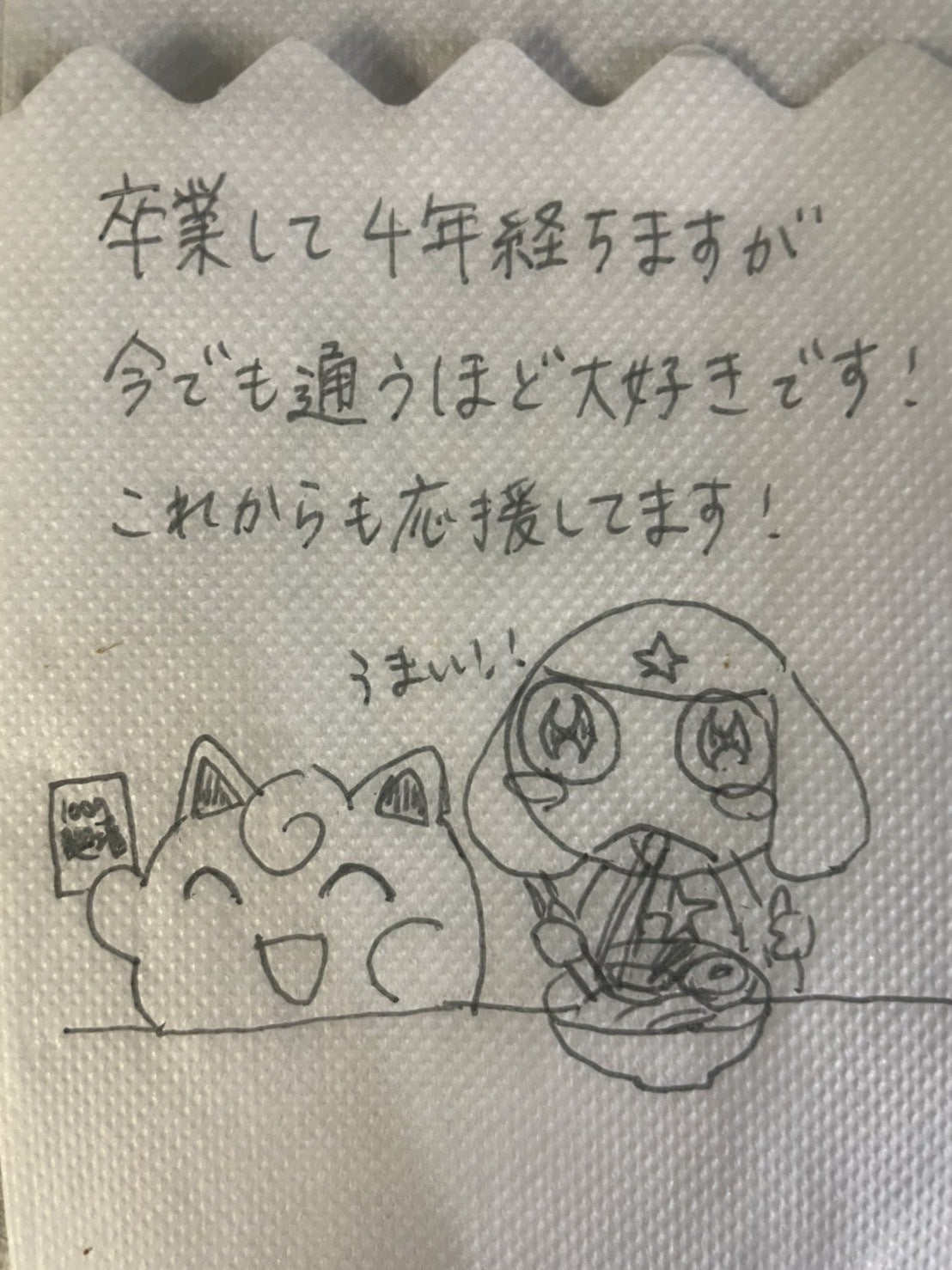 昨日は早稲田店(地下)にメッセージを頂きました。