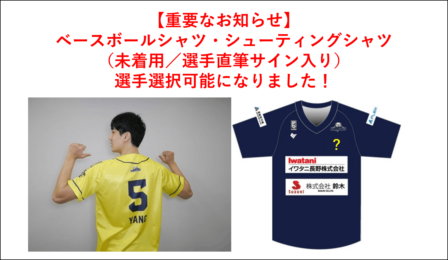 (イエローを選択された場合はシャツの背番号とサインは同じ選手です。ブラックには背番号がございませんので、サインのみご希望選手となります)