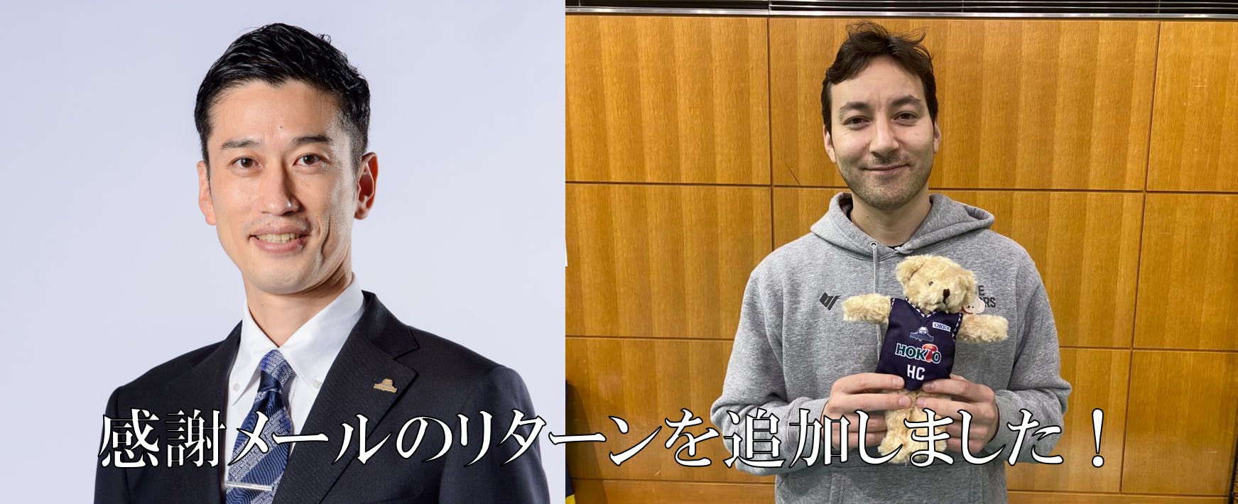 この感謝メールは 片貝代表 ver / 勝久HC ver の2パターンを用意しておりますので、ご希望の方をお選びいただければと思います。