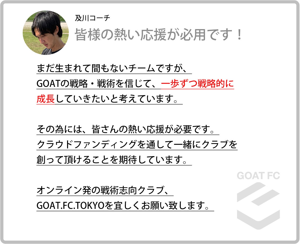 この度は、超戦術的クラブGOAT FC設立資金の支援を頂きたいと思います。