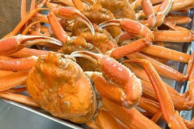 水揚げされたばかりのカニを釜茹でし、急速冷凍。みずみずしく甘い本場のカニの味をぜひ、ご堪能ください。産地により、松葉カニや越前カニと呼ばれるカニです。