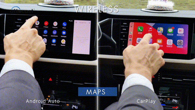 有線を無線に変え、BluetoothとWi-FiだけでスマホとCarPlay/Android Autoを接続することができます。