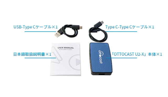 A 「OTTOCAST U2-X」は、USB-A to USB-CとUSB-C to USB-Cの2本のケーブルを付属しております。ほとんどの車のUSBポートに対応できます。