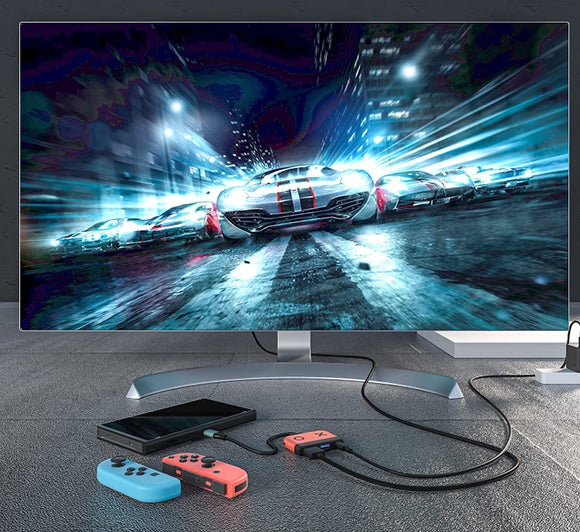 HDMIポートを利用してモニターに映像を出力できます。Nintendo Switch、USB-Cを搭載したコンピューター、Macbook、ラップトップ、タブレット、スマートフォンをサポートします。