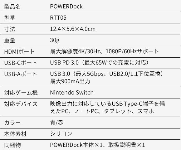 USB-C PD最大出力は65W。SwitchをTVモードで遊ぶとき、POWERDockは引き続きNintendo Switchを充電します。電源が切る心配はありません。(注:純正の充電器を使用することをお勧めします)。