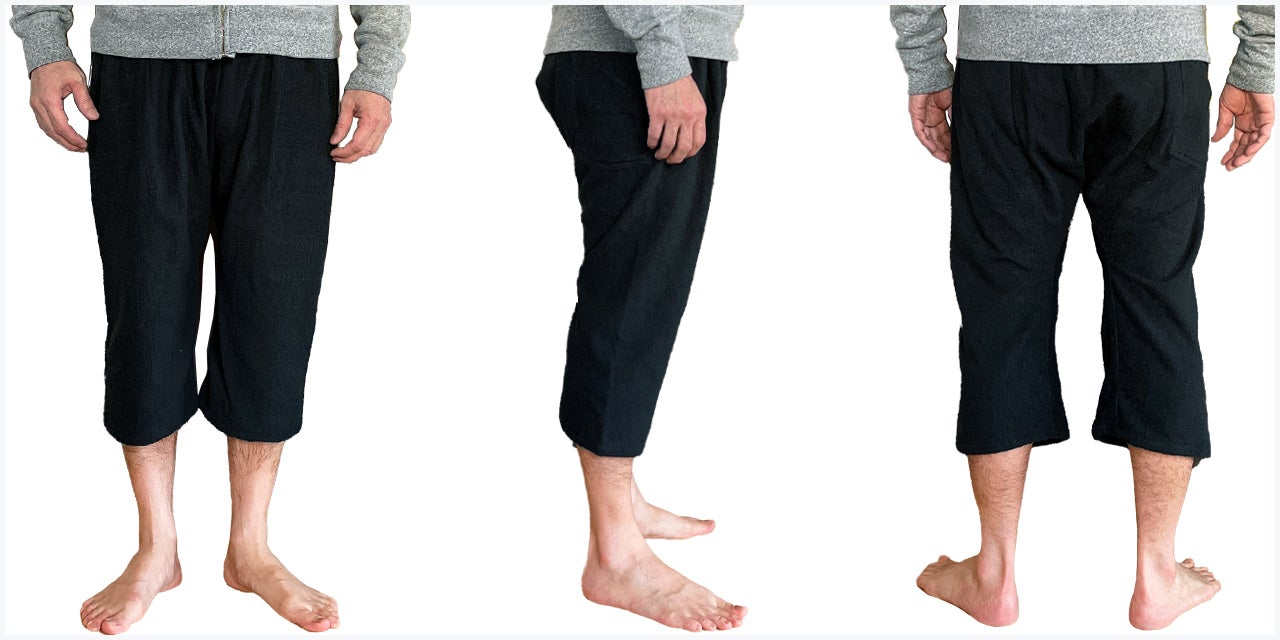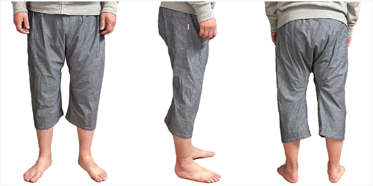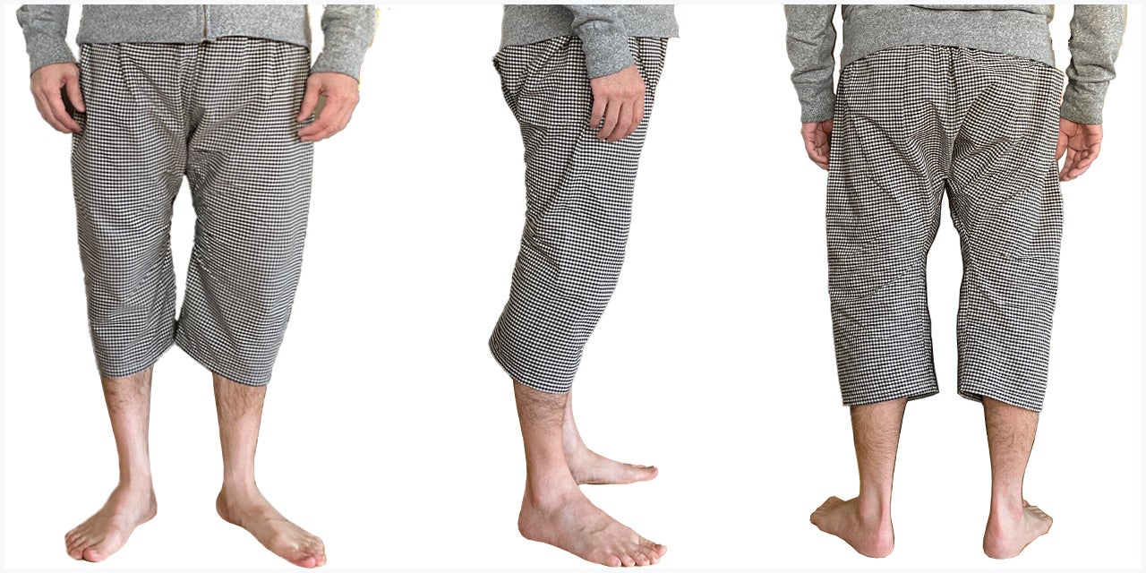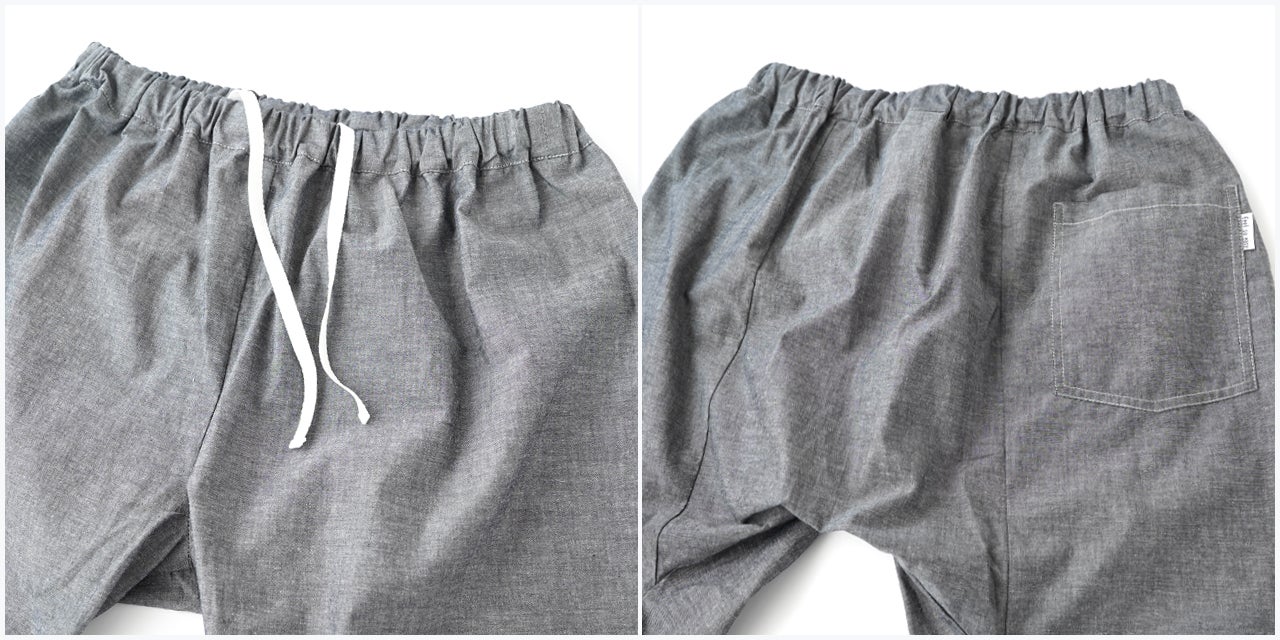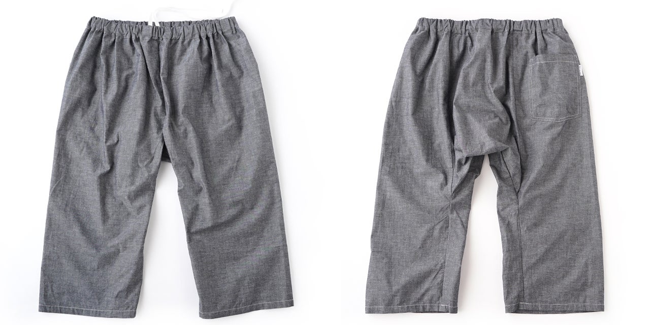 この職人さんの縫製仕様のステテコをぜひ皆さんにも体感していただきたいと思い、現代の縫製工場に協力してもらい、下着としてだけではなくアウターとして1枚ででも着用できるようアレンジを加えて再現しています。