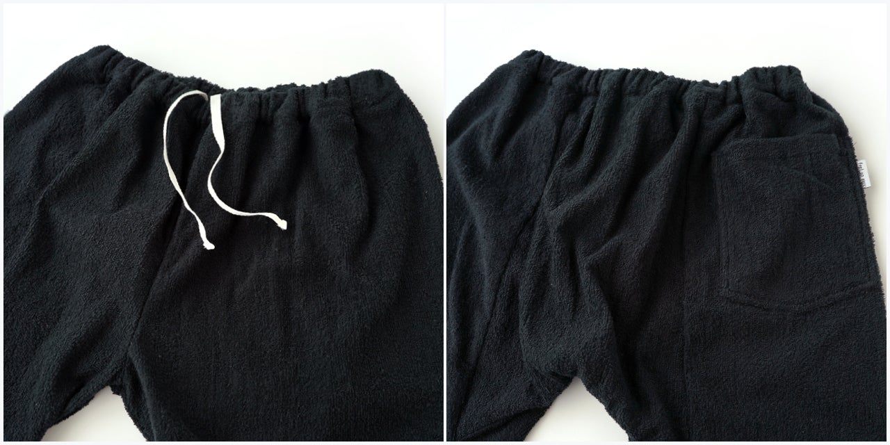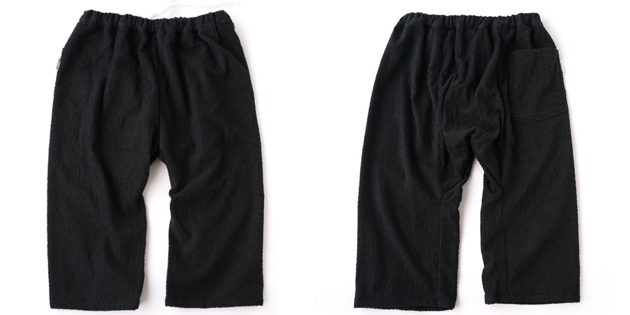前回のプロジェクトでも好評だったタオル生地のステテコ、新たにブラックカラーの登場です。生地は、日本のタオル生産地のひとつである大阪 泉州産です。タオルのパイルが心地良い穿き心地で一度穿いたらきっと病みつきになるでしょう。