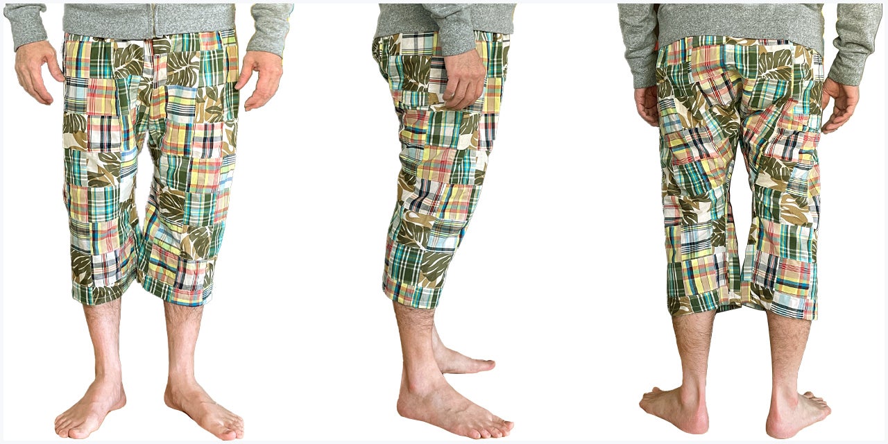 このステテコは、前身(から後身にかけて)2面、後身(マチ部分)1面の3面構造となっています。