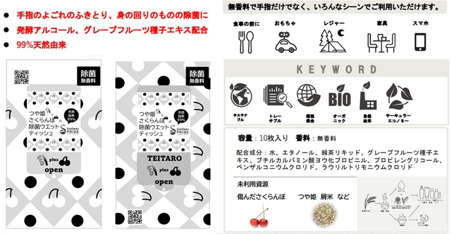 - 未利用のさくらんぼとつや姫を使った除菌ウエットティッシュは、2022年6月から開発