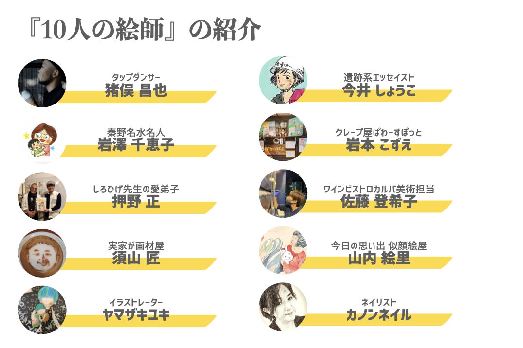 ③このプロジェクトに共感し、参加してくれた仲間たちを『10人の絵師』と名付け、その絵師たちの仕事や活動をリターンにしたりプロジェクトのSNSで紹介したりと描き手も応援できるようになっています。