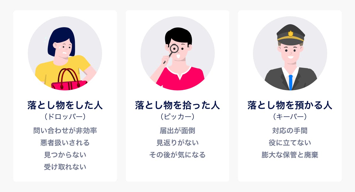 ※初期はCtoCアプリとしてスタートしますので、まずは前述した当事者のうち「落とし物をした人(ドロッパー)」、「落とし物を拾った人(ピッカー)」の課題解決にフォーカスします。