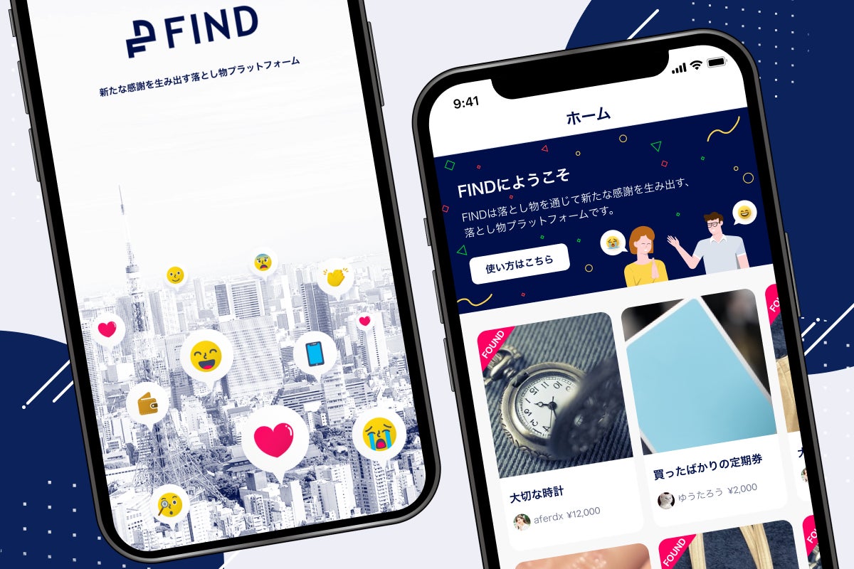 そこで、我々は「落とし物クラウドFIND(ファインド)」を開発・提供することにしました。落とし物は今もなお、そのまま放置されたり、届けられたとしても各施設や警察などそれぞれで管理されています。落とし物をした人の「連絡するだけでも大変」「探したくても見つからない」という悩み・不安を、テクノロジーとコミュニティの力によって解決します。FINDは「落とし物が見つかる」だけではなく、新たな感謝の輪を生み出すことを目標としています。