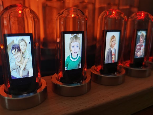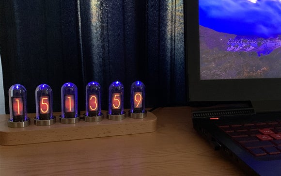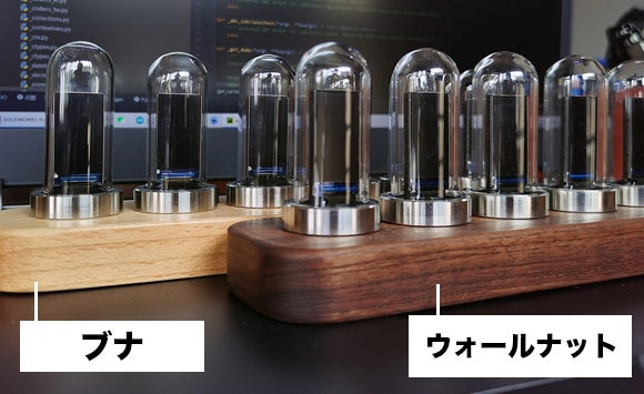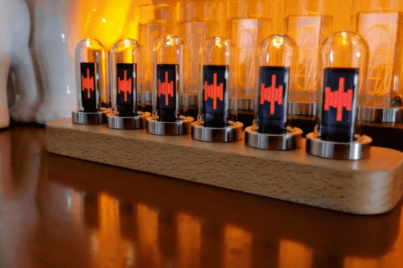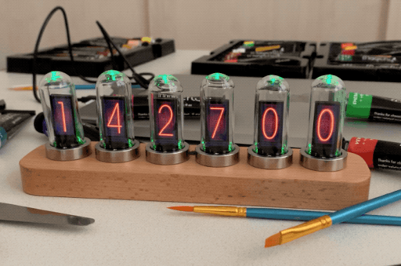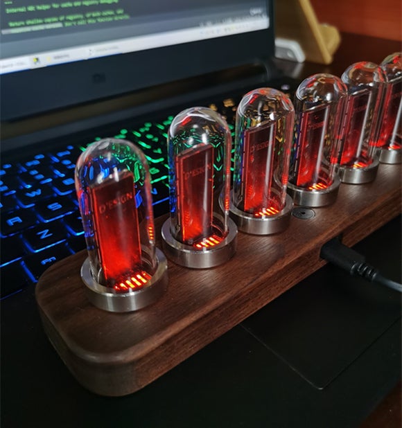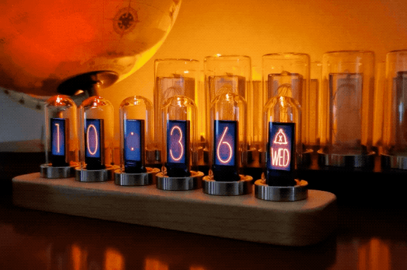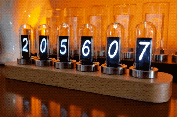 このデジタル時計は、ニキシー管をモチーフに作られています。