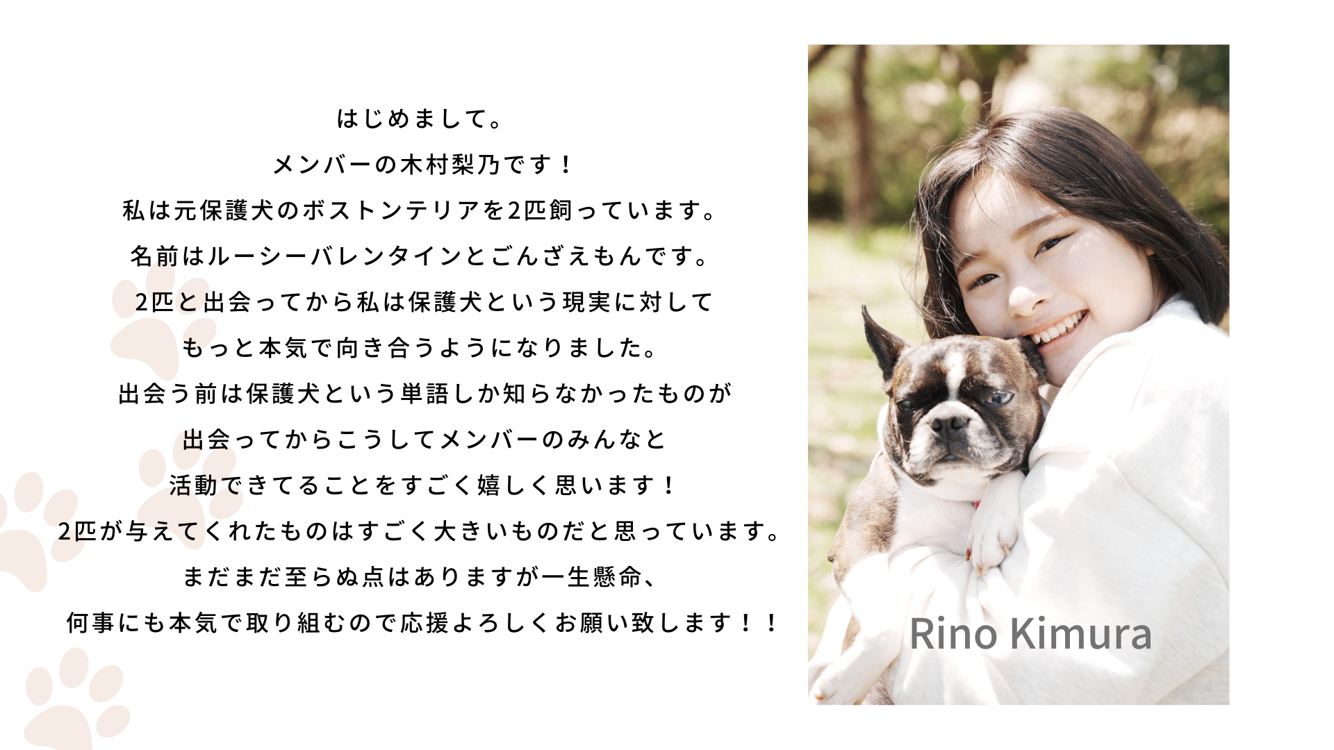 少しでも多くの方に保護犬の存在を知っていただきたく、今回このプロジェクトに参加させて頂きました。