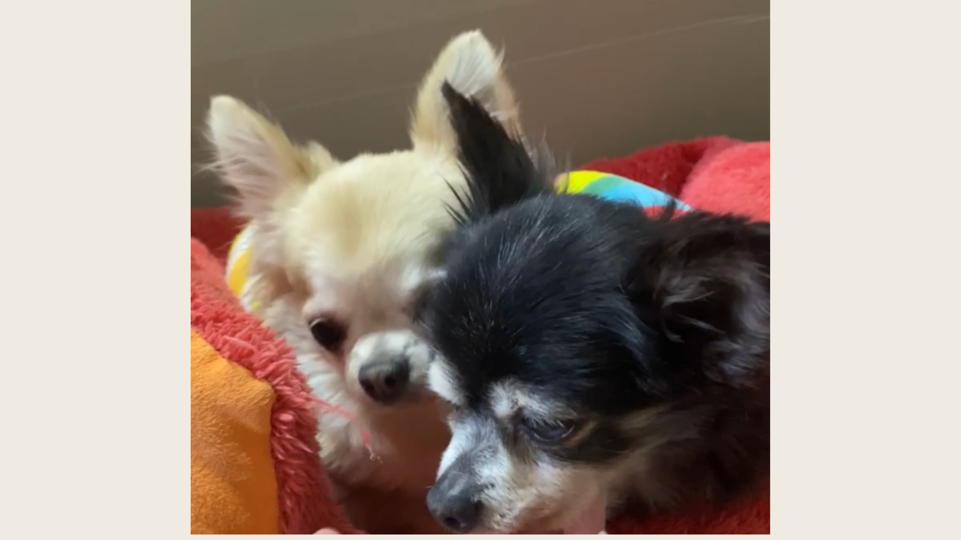 ジルは、「ジモティー」という掲載サイトでお母さんが見つけた保護犬で、先住犬にいじめられていて一緒に飼えないとのことで、サイトに出されていました。テトは愛情を持って育てられたブリーダーの方から引き取りました。