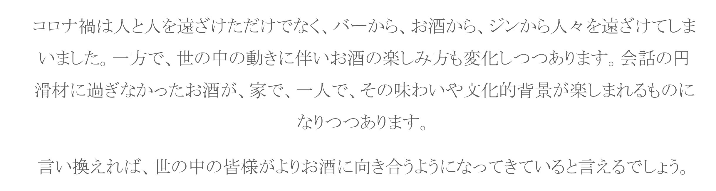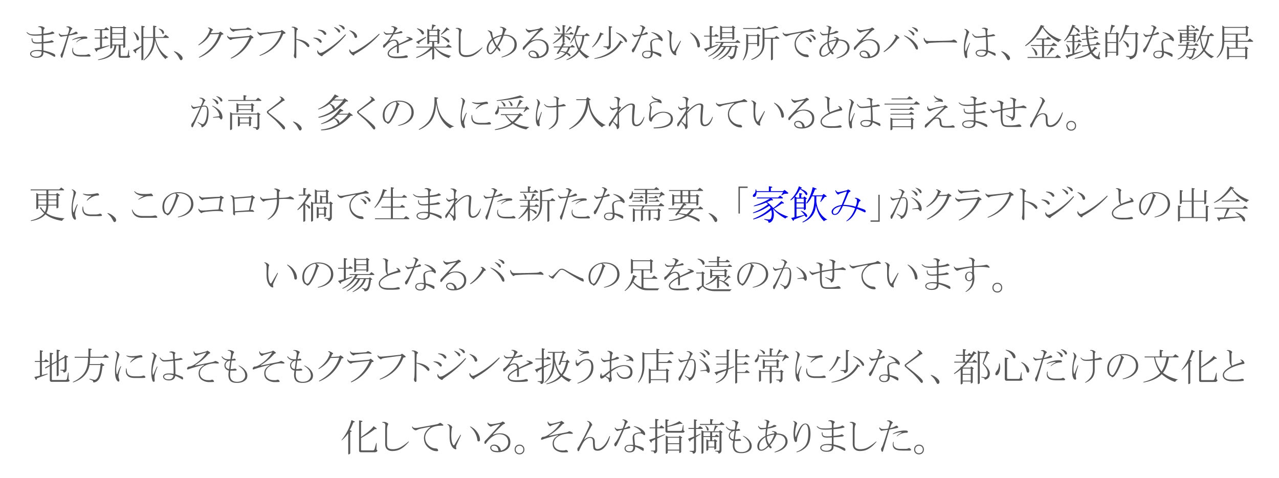 クラフトジンに拘り抜き、ジンの魅力と、ジンをめぐる問題の両方を熟知している私たちが、新しいクラフトジンの楽しみ方を提案します。
