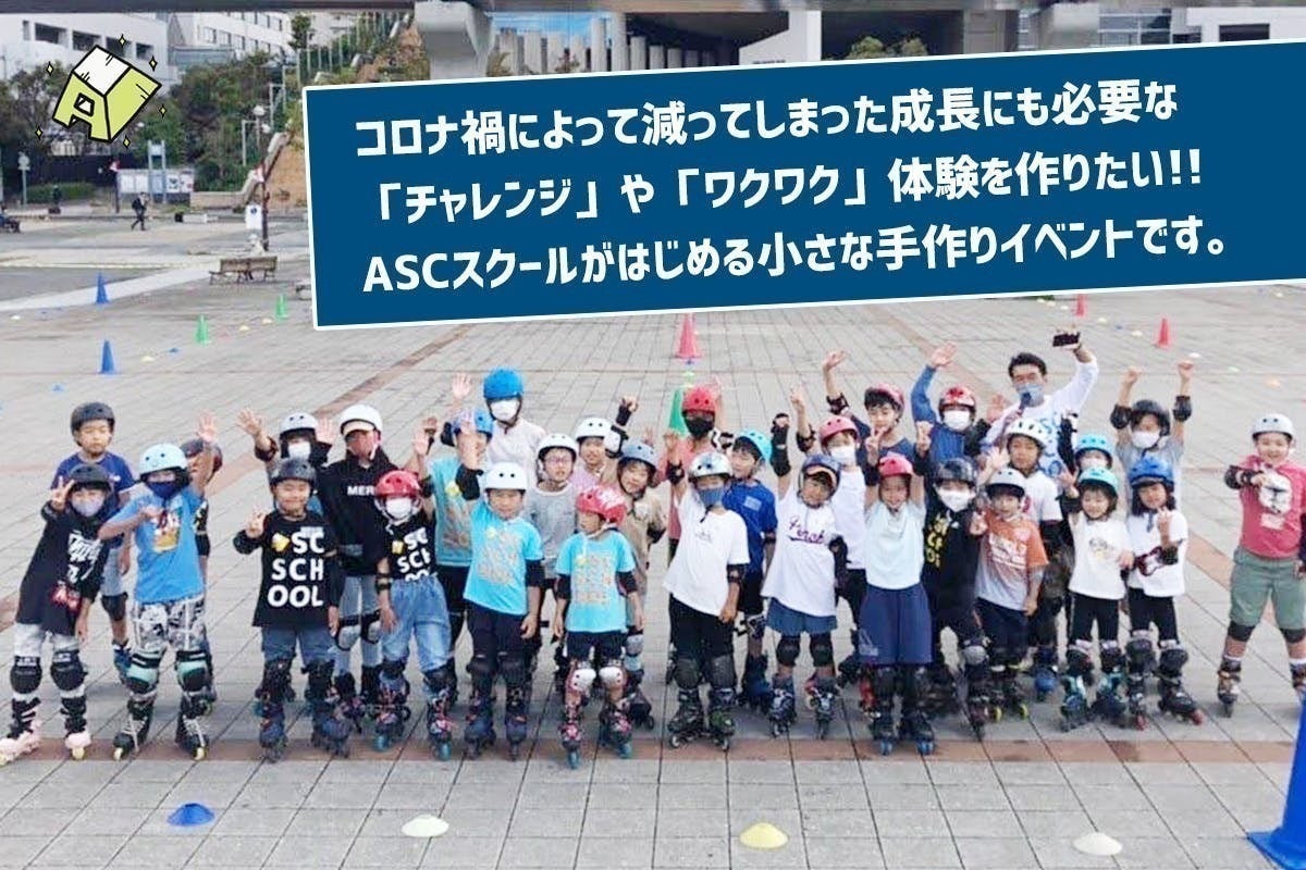 我々、ASCスクールは普段から運動指導を通して「人生にワクワクすること」を伝え続けています。メインのプログラム〈インラインスケート〉の生徒さんと商店街の中を滑りながら掃除をゲームにしてまわったり、鍛錬によって不可能を可能にすることができると栄人先生が車を飛び越えるパフォーマンスを子供たちに披露したり、その表現方法はさまざまです。